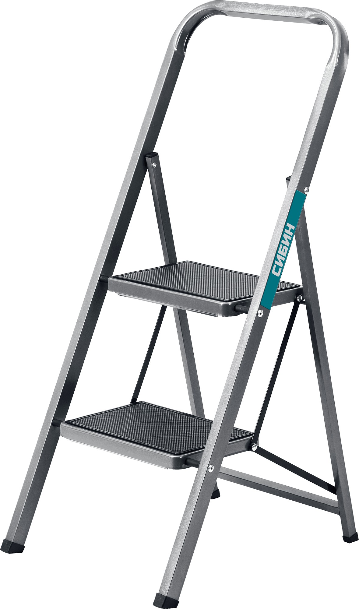 СИБИН 2 ступени, 46 см, c широкими обрезиненными ступенями, стальная стремянка (38807-02)