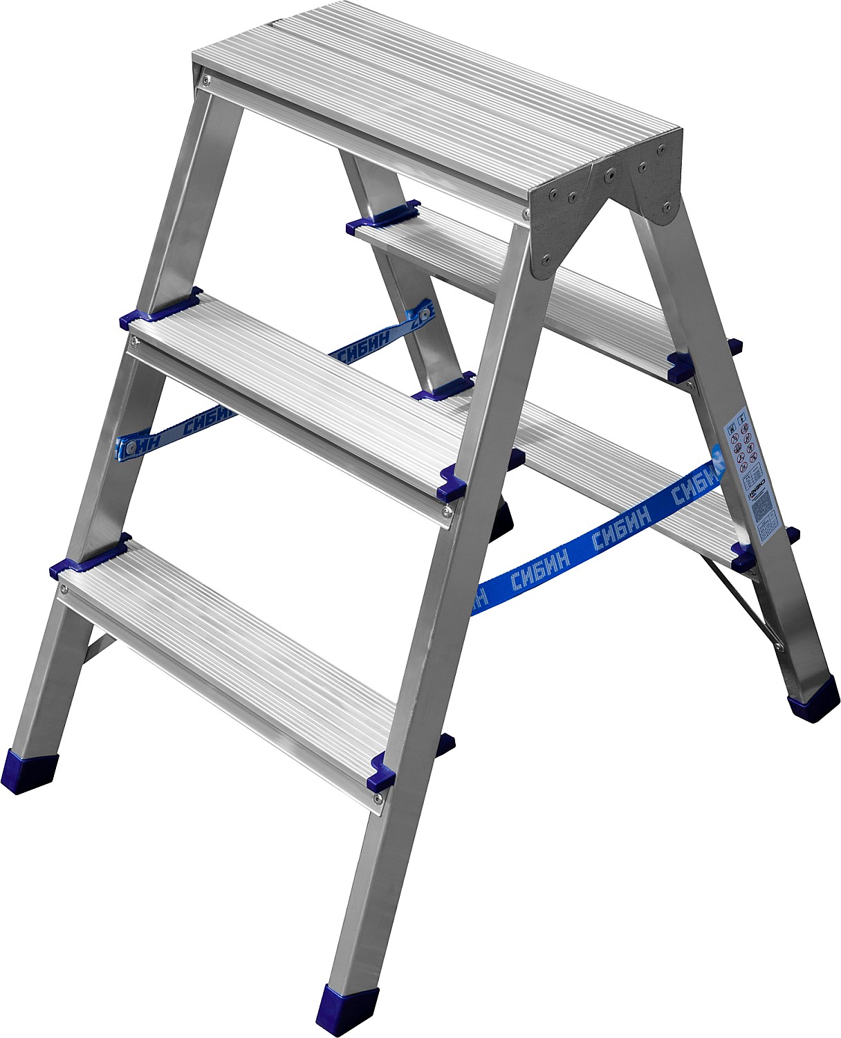 СИБИН 3 ступени, алюминиевая, двухсторонняя стремянка (38825-03)