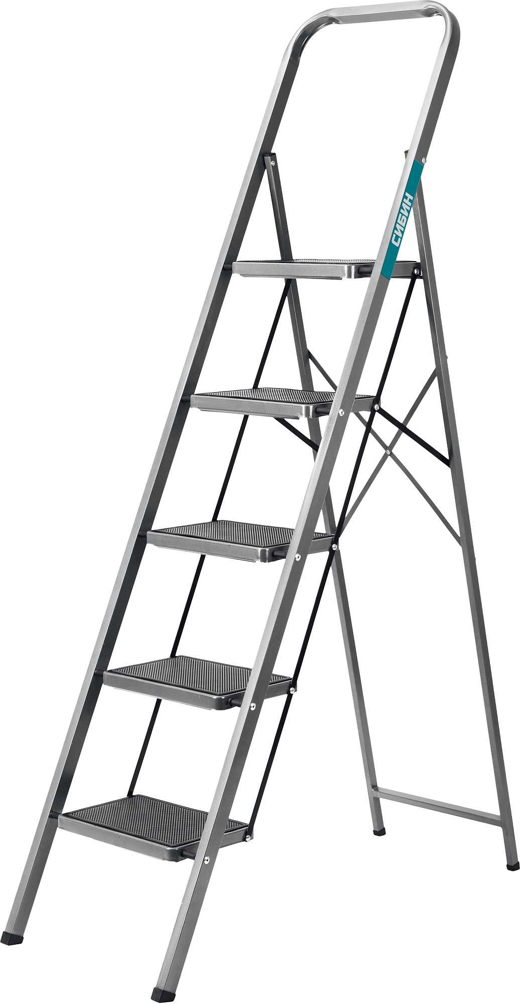 СИБИН 5 ступеней, 118 см, c широкими обрезиненными ступенями, стальная стремянка (38807-05)