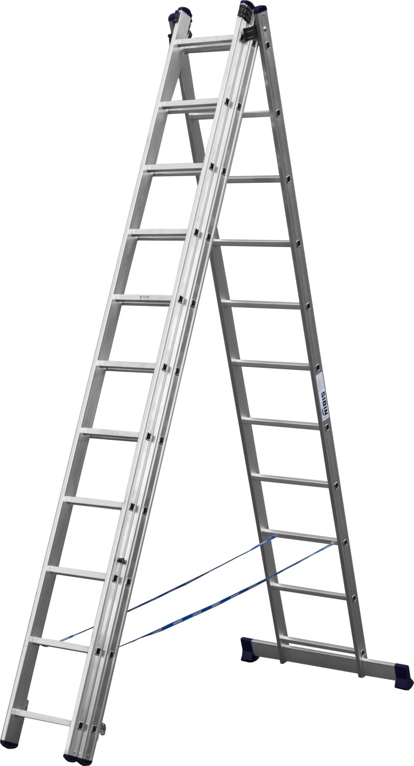 СИБИН 10 ступеней, со стабилизатором, алюминиевая, трехсекционная лестница (38833-10)