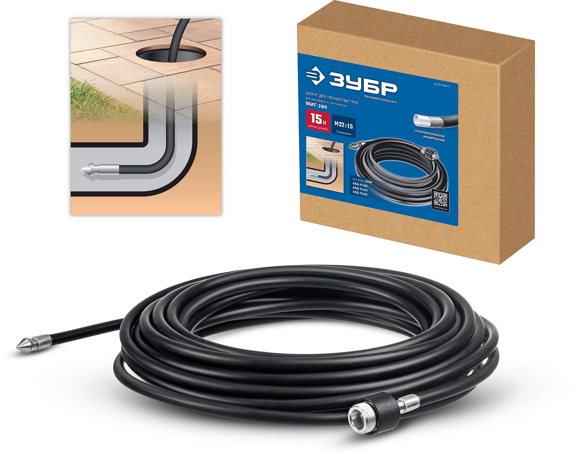 ЗУБР для пистолета МИГ-280, 15 м, шланг для прочистки труб (70414-280-15)
