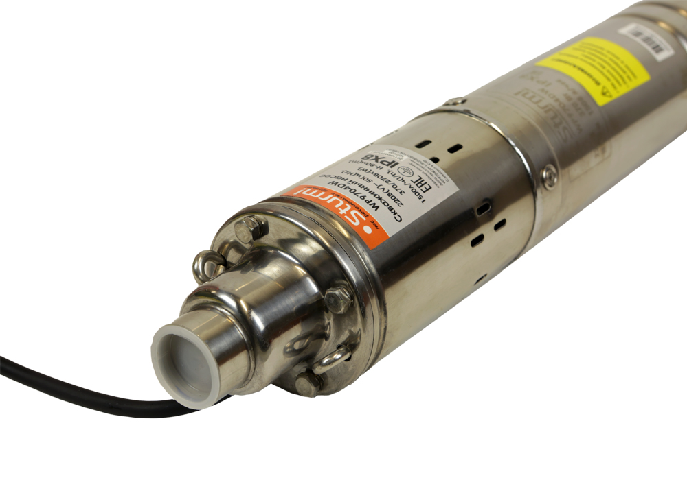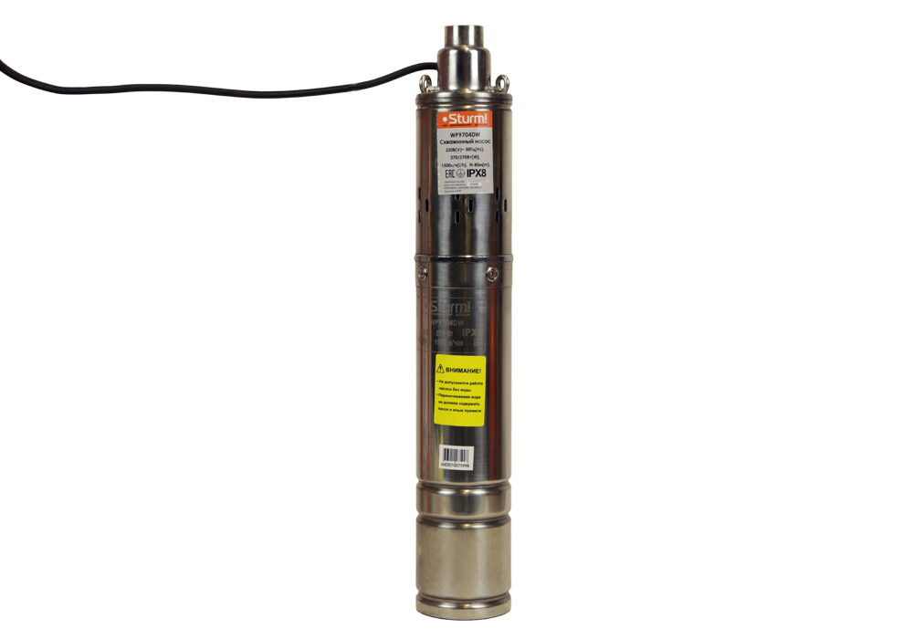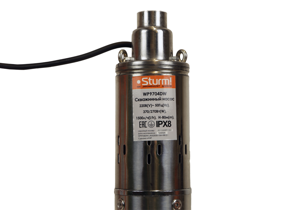 Конструкция насоса с рабочим элементом в виде винта-шнека обеспечивает высокий напор и стойкость к механическим примесям в воде, таким как песок.