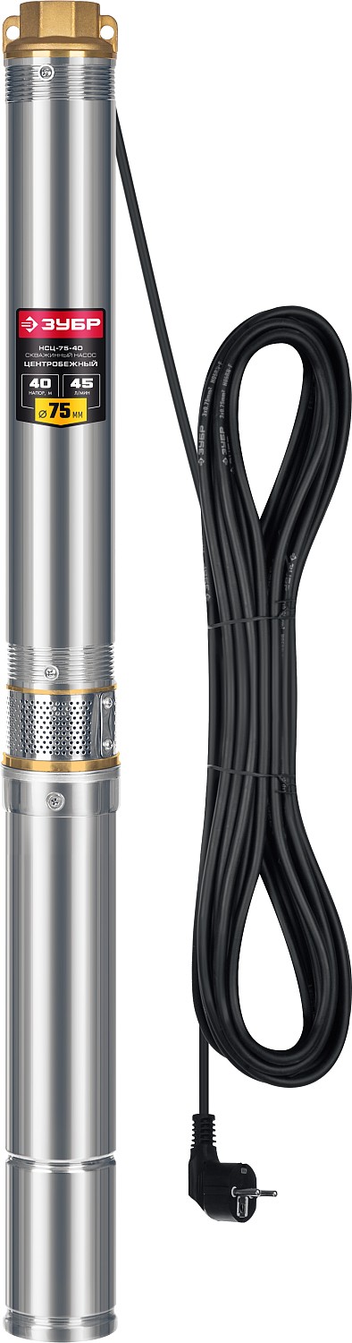 ЗУБР 550 Вт, 40 м напор, скважинный центробежный насос, корпус из нержавеющей стали (НСЦ-75-40)