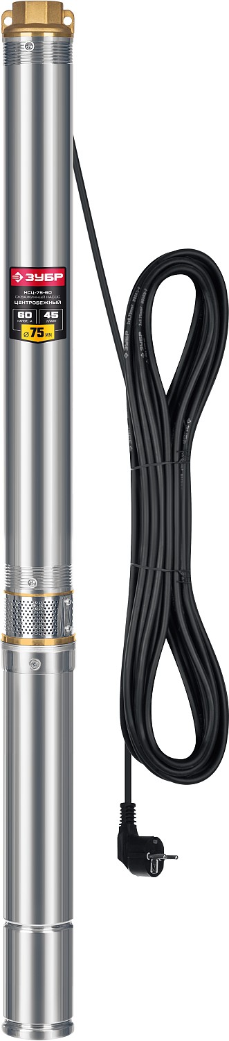 ЗУБР 800 Вт, 60 м напор, скважинный центробежный насос, корпус из нержавеющей стали (НСЦ-75-60)
