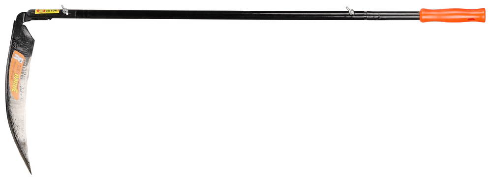 Состоит из укороченного полотна косы, металлического удлинителя и пластмассовой рукоятки.