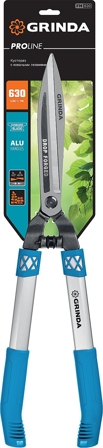 GRINDA FH-630, длина 630 мм, кованые лезвия, антикор. покрытие, алюминиевые рукоятки, накладки РР, кусторез, PROLine (423792)