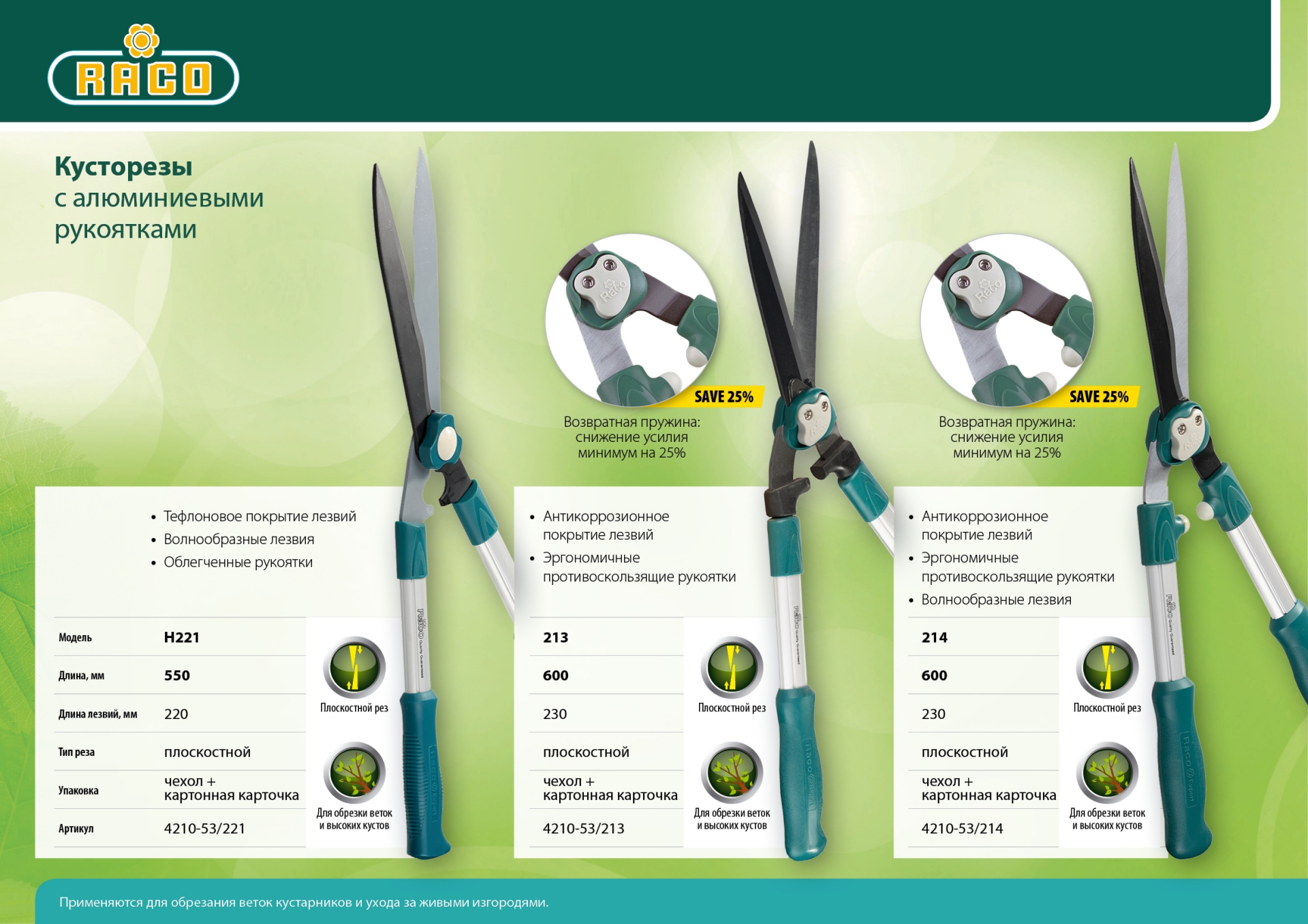 -Небольшой вес кустореза снижает утомляемость при продолжительной работе.;