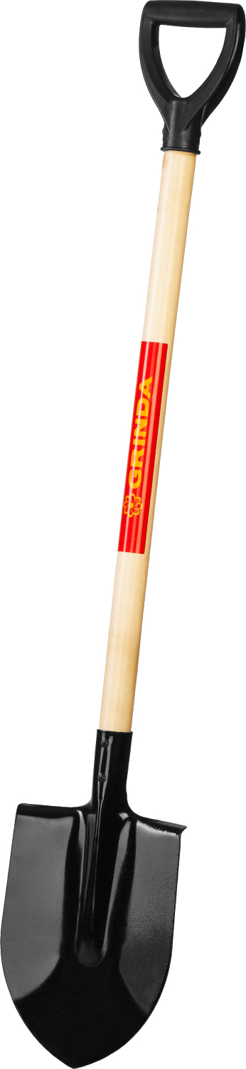 GRINDA 120 см, деревянный лакированный черенок в/с, D-рукоятка, штыковая лопата, закаленное полотно (421823)
