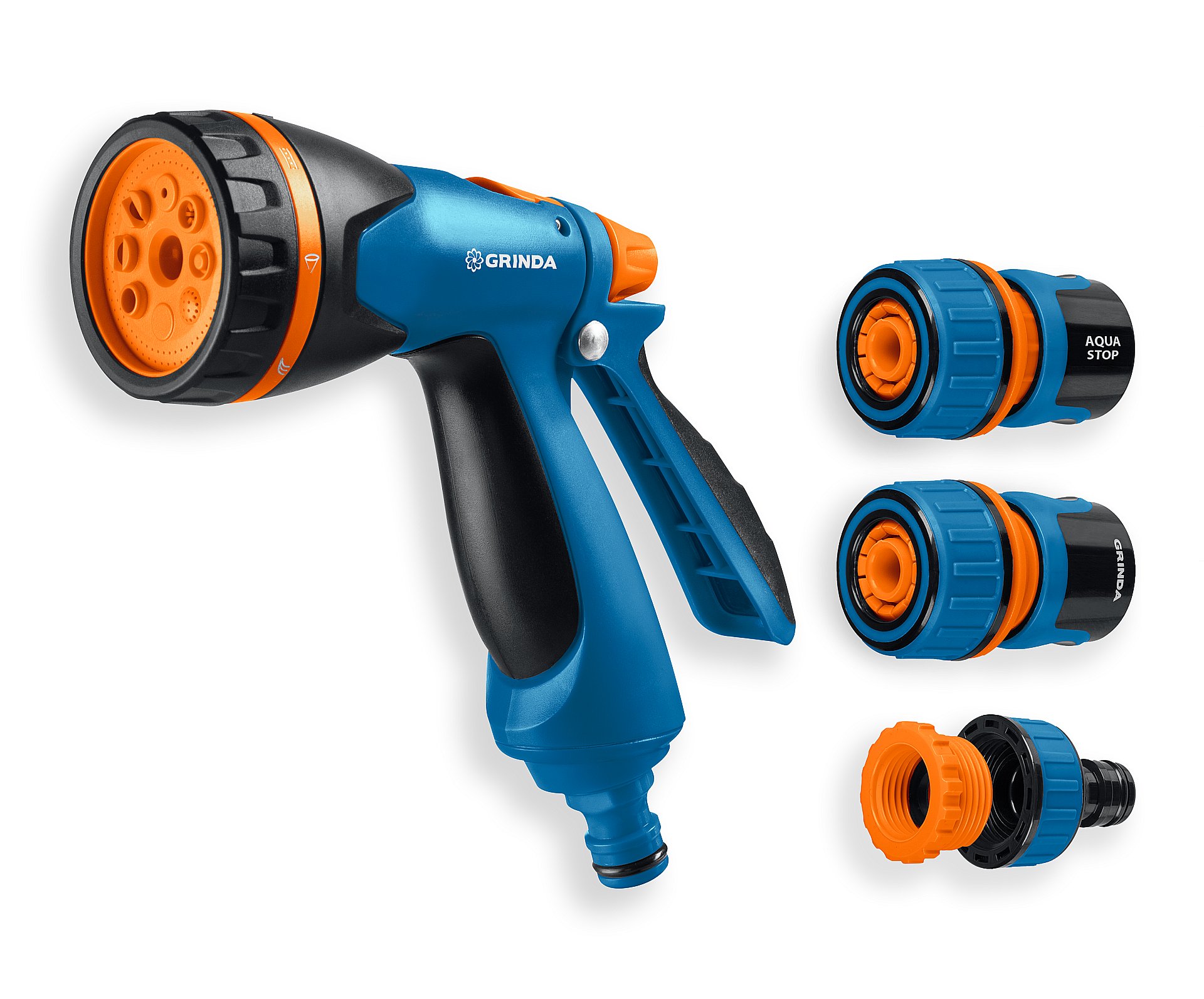 GRINDA B-834, пистолет поливочный B-8, коннектор 3/4, конектор 3/4 с автостопом, адаптер с внутр. резьбой 1/2х3/4, набор поливочный, PROLine (429113)