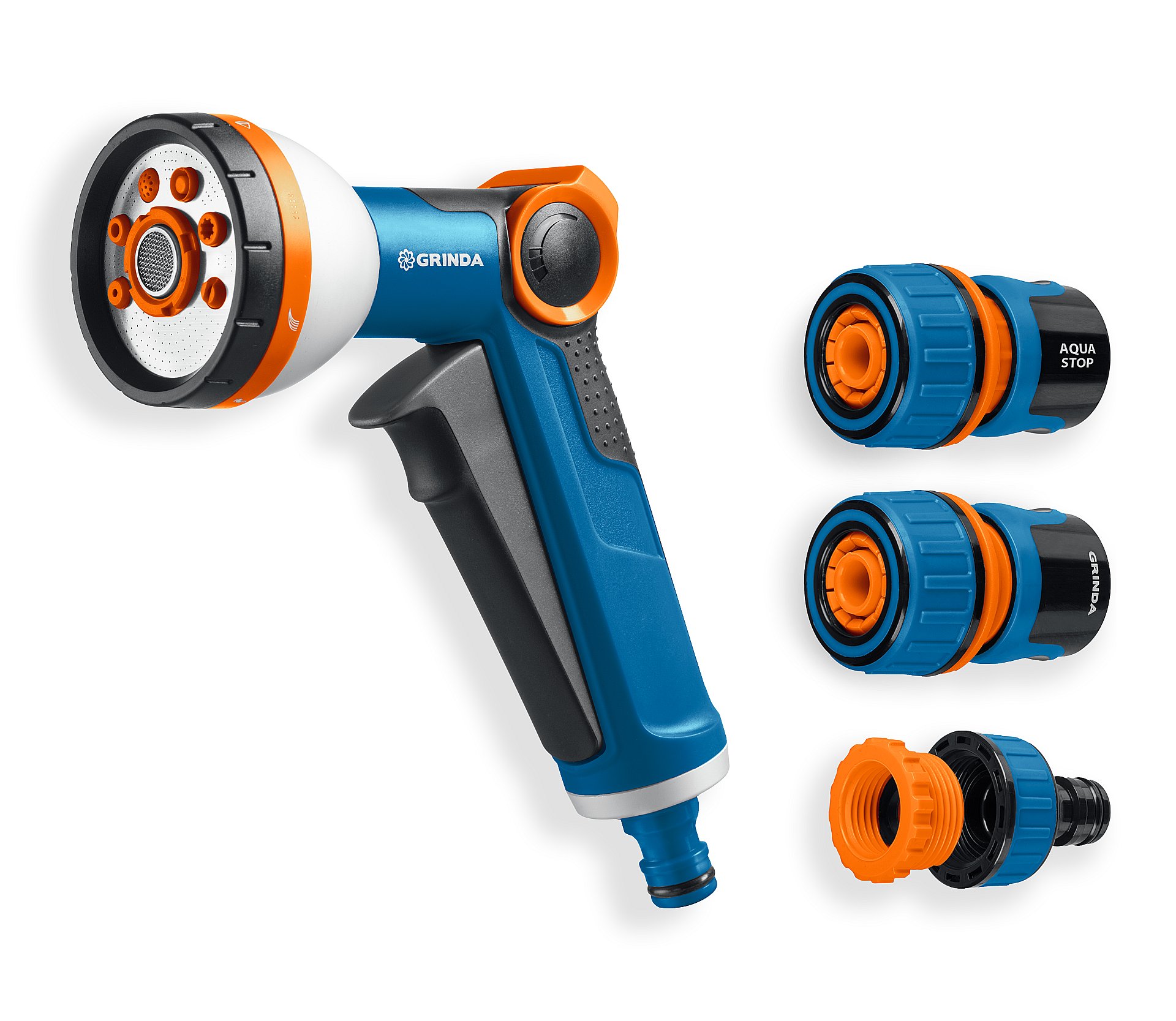 GRINDA Х-834, пистолет поливочный X-8, коннектор 3/4, конектор 3/4 с автостопом, адаптер с внутр. резьбой 1/2 х 3/4,набор поливочный PROLine (429167)