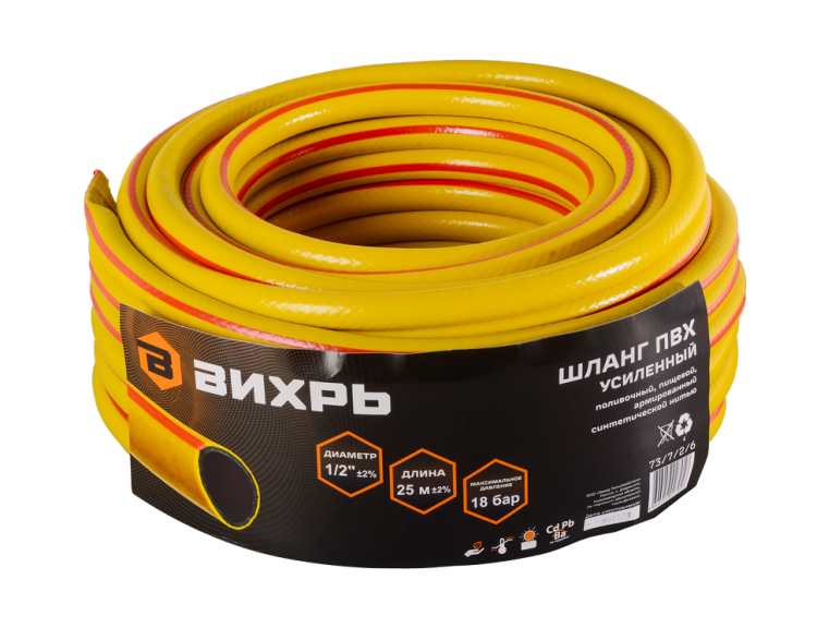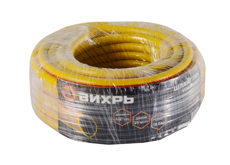 Шланг Вихрь поливочный ПВХ усиленный 1/2" длиной 25м (жёлтый) - это надежный и удобный инструмент для организации полива на вашем участке.