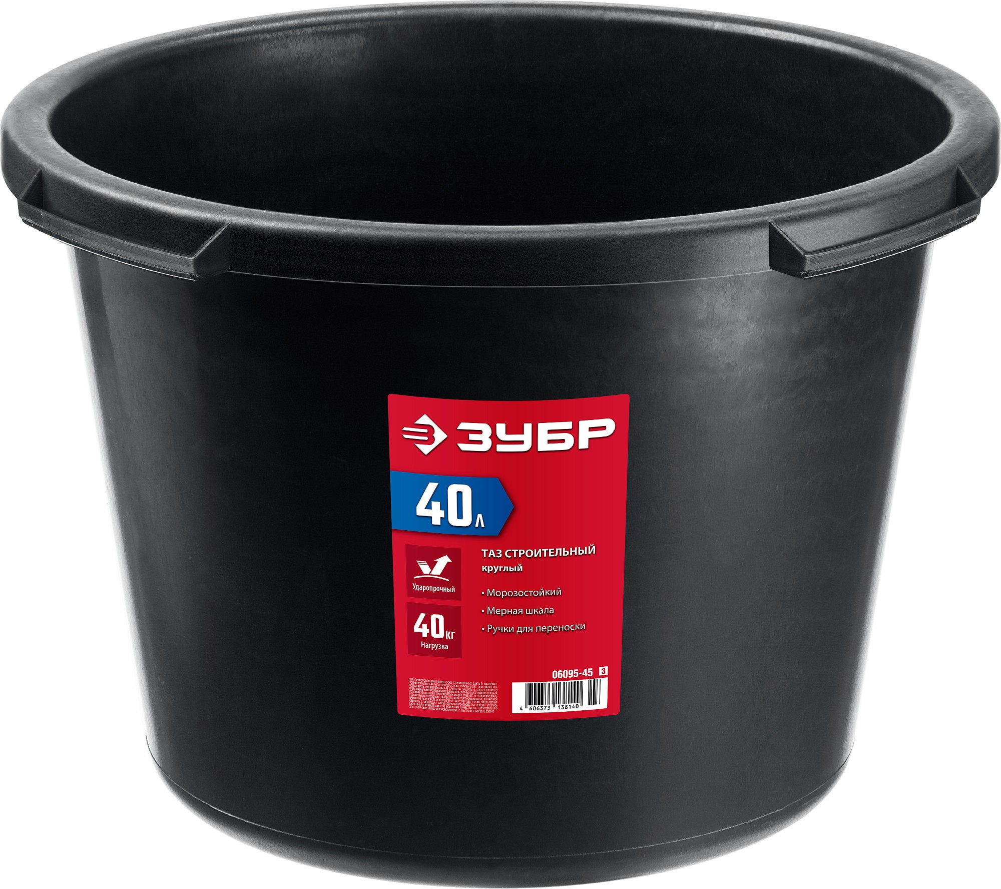 ЗУБР 40 л, первичный высокопрочный пластик, усиленный круглый строительный таз (06094-45)