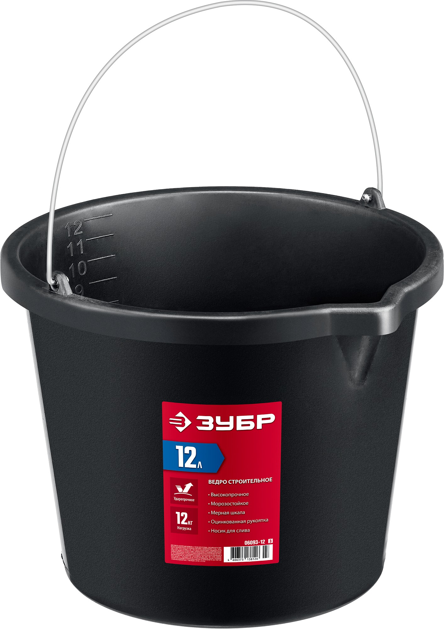 ЗУБР 12 л, высокопрочное с носиком, строительное пластиковое ведро (06093-12)