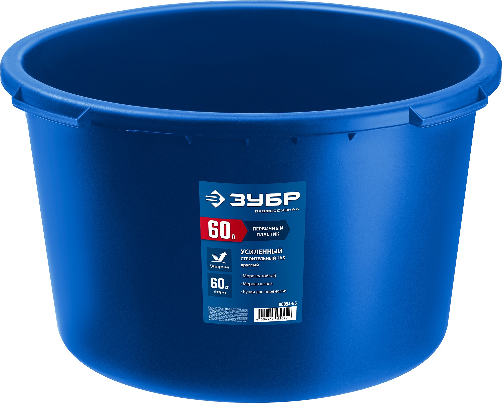 ЗУБР 60 л, первичный высокопрочный пластик, усиленный круглый строительный таз (06094-65)