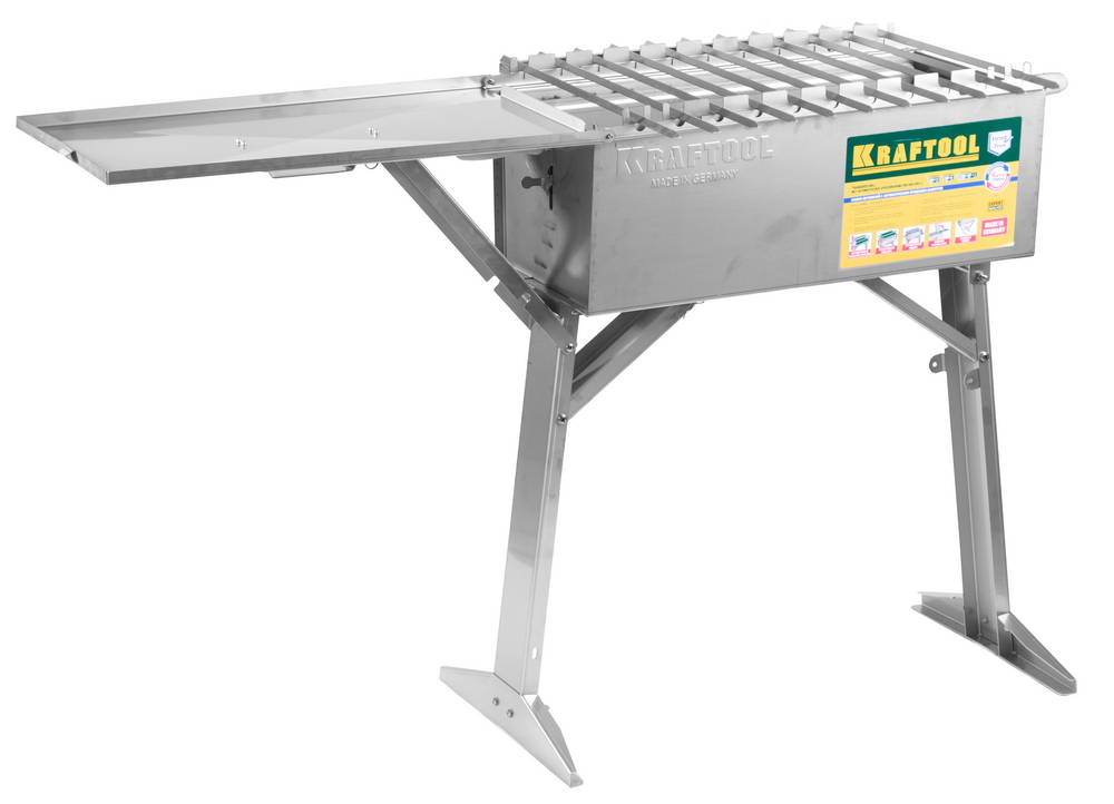 Мангал имеет откидную крышку, которая может использоваться в качестве подсобного стола