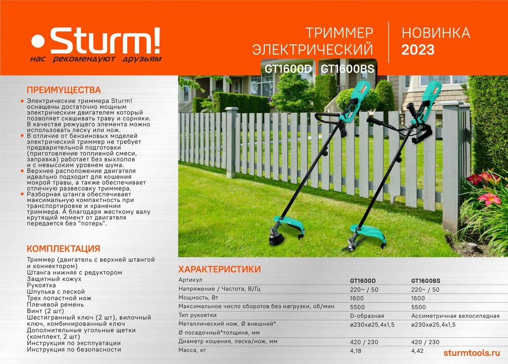Рукоятка велосипедного типа позволяет настроить расположение триммера под любой рост.
