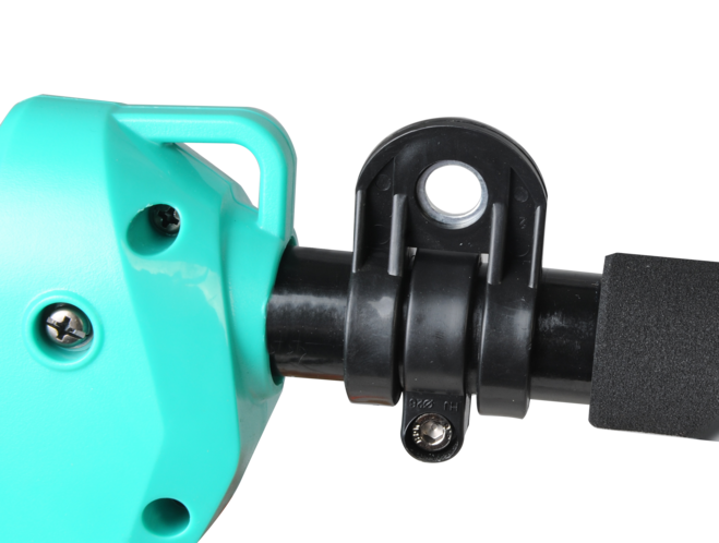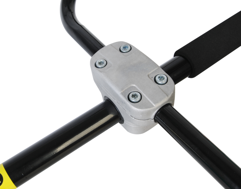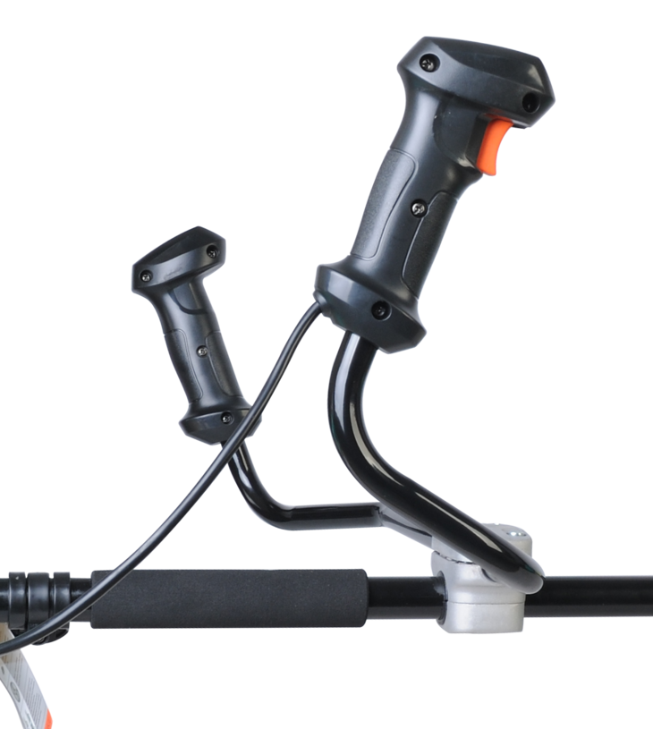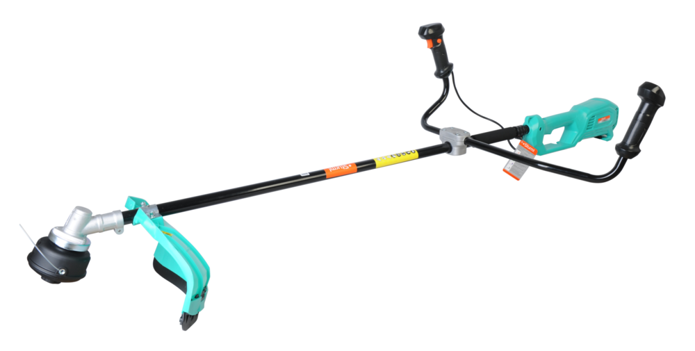 Ассиметричная U-образная рукоять велосипедного типа – позволяет захватывать большую площадь за один заход. Стальной приводной вал – позволяет передать больший крутящий момент от двигателя к режущей оснастке. Защита от непреднамеренного пуска – исключает возможность случайного запуска инструмента. Зацепной крюк – обеспечивает надежную фиксацию сетевого удлинителя к инструменту.